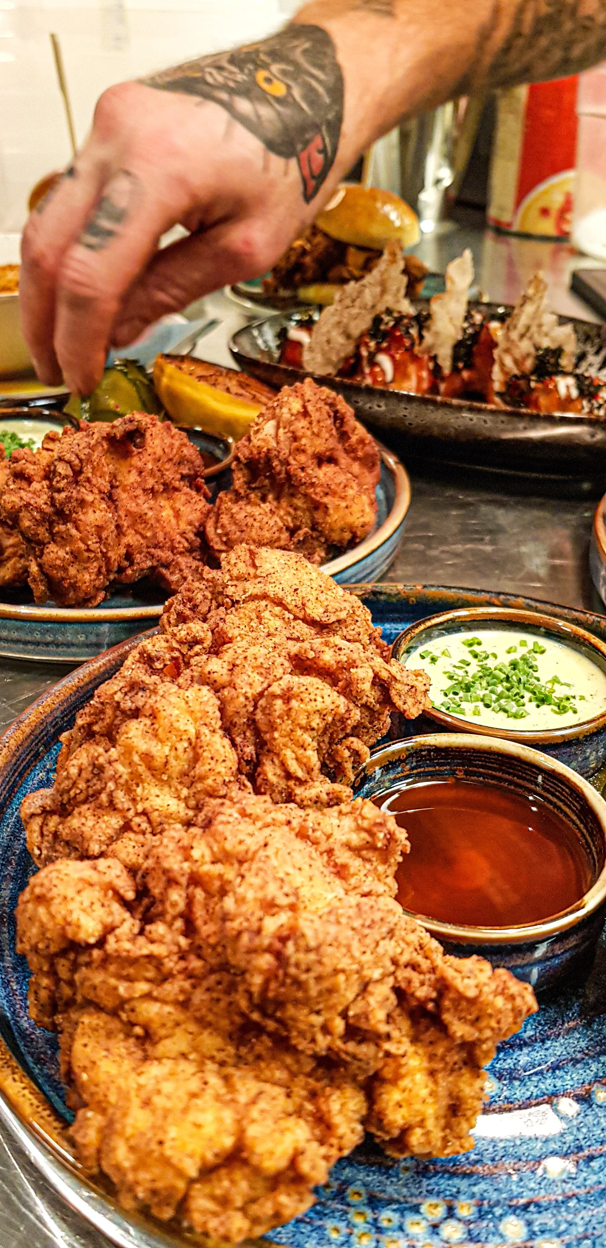 We encourage sharing plates and believe that food tastes better when you eat it with your hands. We love craft beer as well as craft cocktails and above all freshly made fried chicken.